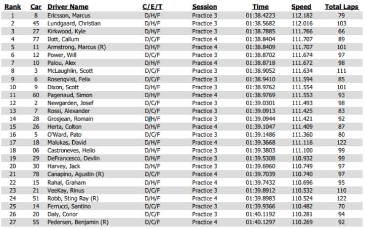Una delle novità più significative del 2023 si ritrova nel passaggio di Alexander Rossi da Andretti a McLaren. Il primo test del californiano con la Dallara-Chevy del team ora diretto da Gavin Ward (scelto da Zak Brown per sostituire Taylor Kiel) è andato tutto sommato secondo le aspettative, incentrandosi per lo più nel prendere confidenza con la nuova squadra e, soprattutto, con il motore Chevy/Ilmor, novità per Rossi. Quattordicesima e quindicesima posizione per la coppia Andretti Romain Grosjean-Colton Herta, seguiti in scia da un Patricio O’Ward (Arrow McLaren), fuori pista in più occasioni. Hélio Castroneves (Meyer Shank Racing) è diciottesimo davanti a Devlin DeFrancesco (Andretti Steinbrenner) e Jack Harvey, insieme a Graham Rahal particolarmente indietro in classifica. Tra i due portacolori del Team Rahal si è posizionato Agustin Canapino, all’esordio in INDYCAR con Juncos Hollinger dopo essersi laureato più volte campione nel turismo argentino. Gli altri due debuttanti, Sting Ray Robb (Coyne-RWR) e Benjamin Pedersen (Foyt Racing) hanno terminato i test rispettivamente al ventiquattresimo e ventisettesimo posto, evitando grandi errori in un circuito ricco di insidie. Nascosto nei bassifondi della classifica c’è il team di Ed Carpenter, al ventitreesimo posto con Rinus VeeKay ed al ventiseiesimo con Conor Daly, incalzato da Santino Ferrucci, quest’anno a tempo pieno con Foyt Racing. Completati i test, le squadre tornano nei rispetti QG per preparare la prima gara della stagione, in programma nel circuito cittadino di St. Petersburg il 3-5 marzo, live su Sky Sport.