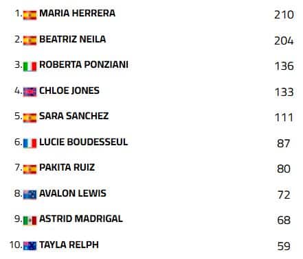 Nel WorldWCR Beatriz Neila fa il colpaccio, vincendo Gara 2 con un attacco perentorio su Chloe Jones all’ultima chicane. L’inglese conquista il quarto secondo posto consecutivo e precede la new entry Lucie Boudesseul, che trova il primo podio nell’appuntamento di casa. Maria Herrera chiude quarta davanti a Roberta Ponziani, mantenendo solo sei punti di margine su Neila nella generale. Ventiduesima Beatrice Barbera.