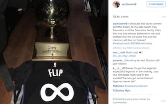 LaVine ha postato immediatamente su Instagram un ricordo al suo coach di Minnesota, Flip Saunders, scomparso lo scorso ottobre a causa di un male incurabile (Foto Instagram) -