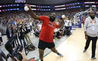 ... e il "Barba" Harden, impegnato nel lancio delle palline destinate ai fans -