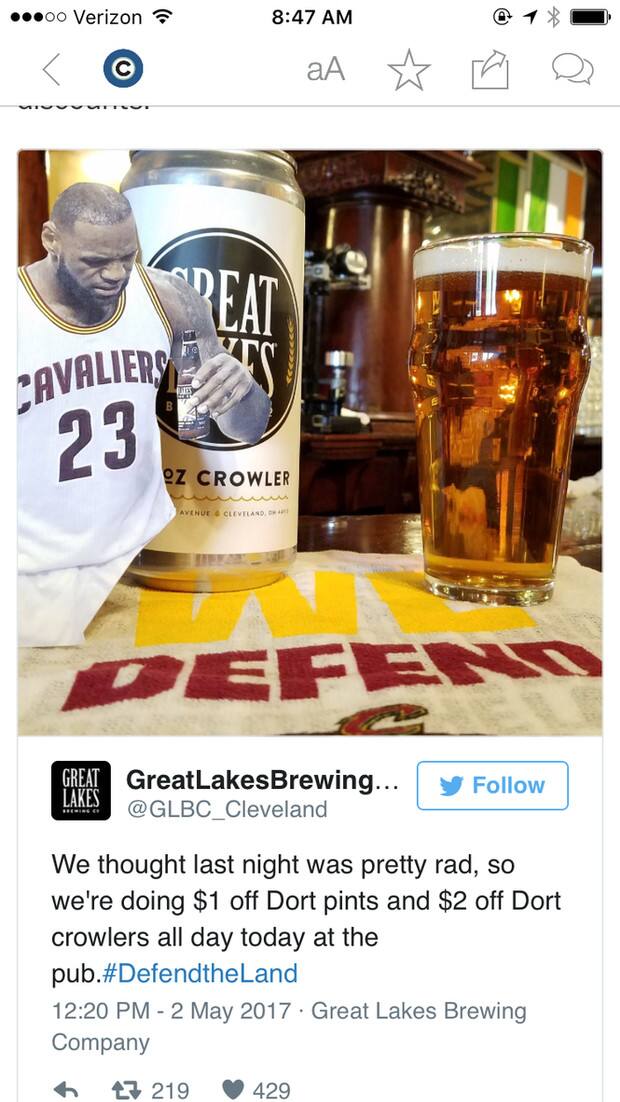 A LeBron James non piace particolarmente la birra, e questo lo abbiamo scoperto dopo il finto sorso in gara-1 contro i Toronto Raptors. Quello che invece non sapevamo è che a LeBron James non piace particolarmente proprio quella birra che gli è capitata in mano, sia per vecchie ruggini che per nuovi motivi. In un paese attentissimo al marketing come gli Stati Uniti, era inevitabile che l’azienda produttrice della Dortmunder Gold presa in mano da LeBron, la Great Lakes Brewing Company, sfruttasse l’improvviso momento di popolarità per capitalizzare sul prodotto, offrendo immediatamente una promozione per vendere le proprie birre a uno o due dollari al pub nel quartiere "bene" di Ohio City, come twittato dall’account del birrificio insieme all’immagine di James con la bottiglia. Un tweet che però è stato cancellato in fretta e furia quando il team del Re si è inviperito per la promozione, facendo già sapere – attraverso il giornalista Joe Vardon di Cleveland.com – che sta considerando di adire le vie legali contro l’azienda per l’utilizzo non autorizzato dell’immagine di James a scopo di lucro, visto che i costi per una pubblicità del genere andrebbero dai due milioni di dollari in su. La Great Lakes ha poi twittato di nuovo la foto del Re con la caption “G.O.A.T. con la G.O.L.D. #DefendtheLand”, ma anche quel tweet è stato poi rimosso. Per provocare una reazione così violenta, evidentemente ci deve essere stato qualcosa di precedente.