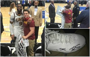 Capita spesso che i tifosi si presentino nelle arene NBA tenendo in mano dei cartelli con messaggi per i propri beniamini; qualche volta succede anche che i protagonisti in campo li notino e li salutino, o nei casi più fortunati regalino loro qualcosa (come successo a due ragazzi italiani qualche tempo fa). Quello che però è successo a Benjamin Adam è però qualcosa di straordinario: presentatosi all’Amway Center di Orlando con un cartello che ringraziava chi lo aveva fatto arrivare lì come regalo di Natale e che sarebbe stato ancora meglio se fosse riuscito a ricevere anche le scarpe di Dwyane Wade. In questo modo è riuscito ad attirare l’attenzione del suo idolo, di cui vestiva una maglietta, e la reazione del tre volte campione NBA è stata però inaspettata: il numero 9 dei Cavs lo ha fatto scendere fino a metà campo, ha firmato il cartello, ha scattato delle foto con lui, gli ha regalato le sue scarpe e lo ha stretto in un lungo abbraccio quando quest’ultimo, sopraffatto dall’emozione, è scoppiato in lacrime. “Wade è il mio giocatore preferito da quanto ho cinque anni, lo seguivo sin dai tempi di Miami e poi ultimamente a Chicago e Cleveland. Quando mi ha chiamato giù dal mio posto ho iniziato a piangere: è stato incredibile, ha fatto un gesto bellissimo e ancora non riesco a credere che sia successo” ha scritto su Twitter, provando la sua identità con una foto delle scarpe firmate dal suo idolo.