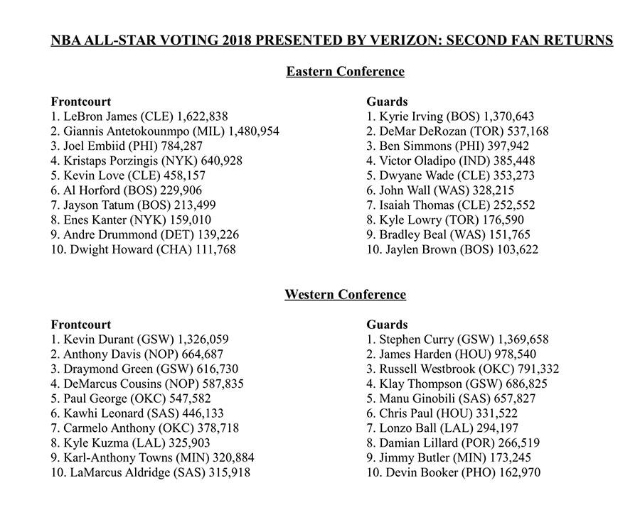 NBASteph Curry ha sorpassato Kevin Durant come leader per voti all'All-Star Game, primato che lo farebbe capitano di una delle due squadre contro quella di LeBron James. Un privilegio che Durant preferirebbe evitare: "Non voglio farlo, mi basta giocare la partita"