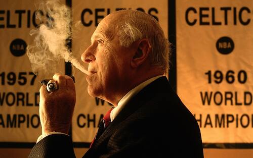 #2 RED AUERBACH | L’uomo passato alla storia con il sigaro in mano (quello acceso in occasione delle tante vittorie) è titolare del banner con il n°2 perché la sua è considerata – dietro solo a quella del fondatore Walter Brown – la seconda figura più importante nella storia dei Celtics. In realtà, per ciò che ha vinto, potrebbe essere tranquillamente la prima: nove titoli NBA da allenatore, di cui otto vinti consecutivamente, poi anche presidente e general manager (altre sette titoli per lui in queste cariche). Dal 1968 è nella Hall of Fame.
