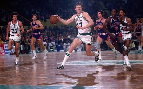 #33 LARRY BIRD | Come McHale, 13 stagioni tutte in maglia Celtics per “Larry Legend”, che ha vinto tre titoli NBA e altrettanti titoli premi di MVP (per due volte è stato anche votato MVP delle Finals). Suo il premio di Rookie dell’Anno nel 1980, per 12 volte è stato un All-Star, dove ha vinto per tre volte la gara da tre punti. Solo Havlicek ha segnato più di lui con la maglia biancoverde: dal 1998 è nella Hall of Fame.