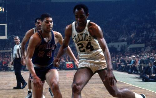 #16 TOM "SATCH" SANDERS | Conosciuto più col soprannome (“Satch”) che col suo nome (Tom) ha giocato 13 stagioni nella NBA, sempre a Boston (916 partite in maglia Celtics, sesto di sempre), vincendo il campionato otto volte. È stato anche, per solo un anno e mezzo, l’allenatore della squadra.