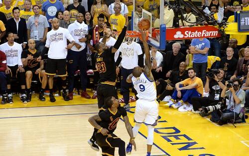 19.06.2016 | GOLDEN STATE WARRIORS-CLEVELAND CAVALIERS 89-93 | La settima e decisiva gara della serie contro Golden State, guadagnata dopo aver inseguito per 3-1 nella serie, è ricordata per la stoppata di LeBron su Iguodala e poi per la tripla della vittoria di Kyrie Irving che dà ai Cavs il primo titolo NBA della loro storia. James chiude la sua recita alla Oracle Arena con una tripla doppia da 27 punti, 11 assist e altrettanti rimbalzi. E l’ovvio titolo di MVP della serie.