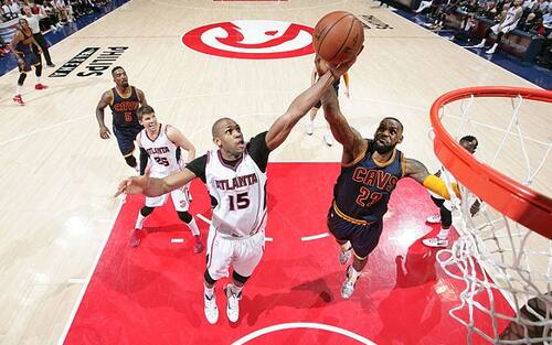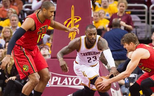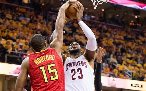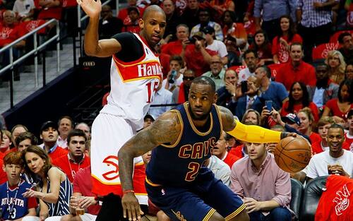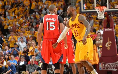2016, CLEVELAND-ATLANTA 123-98, gara-2 semifinale di conference | La seconda sfida della serie non ha storia: Cleveland segna 74 punti nel solo primo tempo (contro i 38 di Altanta): per Horford 3/7 al tiro, 10 punti ma un eloquente -22 di plus/minus, LeBron James è il migliore dei suoi con 27 punti.