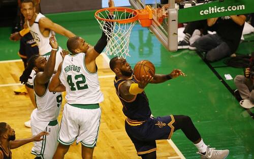 2017 BOSTON-CLEVELAND 104-117, gara-1 finale di conference | Pur sfoggiando il fattore campo a favore, Boston deve subito inchinarsi alla legge del “Re”: James chiude con 38 punti mentre Horford non va oltre gli 11 punti con 4/11 (e anche 8 rimbalzi e 6 assist, ma il suo plus/minus è negativo, -14).