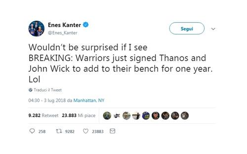 ENES KANTER | Non sarei sorpreso se vedessi BREAKING: Gli Warriors hanno appena firmato Thanos e John Wick per rafforzare la loro panchina per un anno LOL
