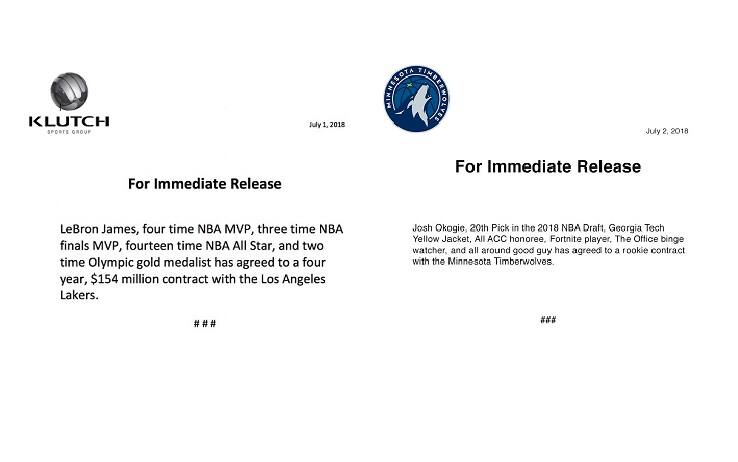 Al secondo giorno di free agency, il mondo NBA è stato scosso da un comunicato di sole cinque righe in carta intestata Klutch Sports Group diventato presto virale. Annunciava la scelta di LeBron James di unirsi ai Los Angeles Lakers con un contratto quadriennale del valore di 154 milioni di dollari (dimenticandosi curiosamente, nell’elencare premi e traguardi raggiunti, i tre titoli NBA vinti tra Miami e Cleveland). Poche righe sufficienti però a scatenare un autentico terremoto nel mondo NBA – ma anche a ispirare i Minnesota Timberwolves che quando è venuto il momento di annunciare l’ufficialità della firma della loro prima scelta assoluta al Draft di giugno, Josh Okogie, hanno pensato a un comunicato molto simile, declinato però in chiave ironica. “Josh Okogie, 20^ scelta al Draft 2018, membro dei Georgia Tech Yellow Jackets selezionato per il miglior quintetto ACC, gran giocatore di Fortnite e appassionato di The Office, oltre che gran bravo ragazzo in generale, ha firmato il suo contratto da rookie con i Minnesota Timberwolves”. Senza le roboanti vittorie di un LeBron James da inserire nel testo (4 volte MVP NBA, 3 volte MVP delle finali, 14 volte All-Star, due volte oro olimpico) ecco allora la parodia che esalta le doti della guardia di Georgia Tech ai videogames nonché la sua passione per la serie tv The Office, vista rigorosamente in modalità binge watching (una puntata dietro l’altra, senza pausa). Un modo curioso – e sicuramente originale – per dare il benvenuto nella lega al giovane talento degli Yellow Jackets, che alla Combine ha fatto registrare dati interessantissimi e che porta ai T’Wolves le sue doti di giocatore da 3&D (tiro da tre e difesa, con la capacità di potersi occupare di attaccanti con caratteristiche e ruoli diversi). In attesa di vedere cos’è in grado di fare in campo e guadagnarsi l’attenzione di tutti con le sue giocate, Okogie ha iniziato a far parlare di sé in maniera alternativa – ma ogni volta che il tuo nome (anche indirettamente) viene associato a quello di LeBron James motivi di lamentarsi non ne possono esistere.