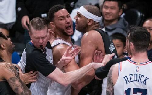Ben Simmons e Jared Dudley a stretto contatto: dopo le polemiche delle gare precedenti, la tensione è esplosa