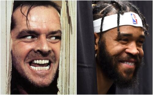 JAVALE McGEE o JACK NICHOLSON? | Il viso sorridente del lungo dei Lakers sbuca da dietro una tenda nera: e la sua espressione (seppure meno minacciosa) ricorda subito la celebre inquadratura con Jack Nicholson protagonista in "Shining"...