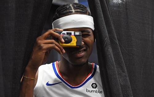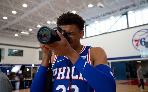 MATISSE THYBULLE, PHILADELPHIA 76ERS | Invece di chiedere ai fotografi di mostrargli i loro scatti, il rookie dei Sixers si sostituisce direttamente a loro e approfitta del media day per scattare qualche immagine