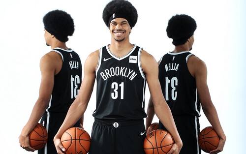 JARRETT ALLEN, BROOKLYN NETS | Uno, due, tre afro: un gioco di specchi moltiplica l'immagine del lungo dei Nets (e della sua caratteristica capigliatura)