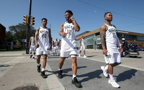 MILWAUKEE BUCKS | I rookie della squadra del Wisconsins in giro per la città con le divise di gioco: non una cosa che si vede tutti i giorni per le strade di Milwaukee