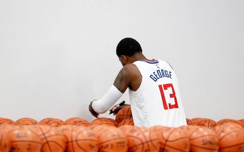 PAUL GEORGE, L.A. CLIPPERS | Non ci sono solo foto e riprese: tra i doveri dei giocatori durante il media day anche quello di firmare centinaia di palloni destinati poi alle mille iniziative di marketing della propria squadra. Esegue PG13