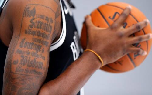 DEANDRE JORDAN, BROOKLYN NETS | "Serenità", "coraggio", "saggezza" sono le parole d'ordine dell'enorme tatuaggio sul braccio destro di DeAndre Jordan, chiamato a una nuova avventura a Brooklyn