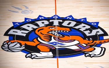 Eccolo il primo logo dei Raptors fare bella mostra di sé al centro del campo durante la sfida tra Toronto e Orlando