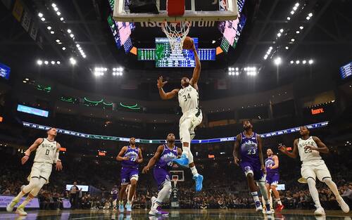 MILWAUKEE BUCKS-UTAH JAZZ 122-118 | Vincono ancora i Bucks, che battono in volata i Jazz grazie a un super Antetokounmpo. Un finale combattuto, in cui Milwaukee - avanti di 7 a 90 secondi dalla sirena - pensava di aver chiuso i conti. I canestri di Bogdanovic e Mitchell, seguiti dal successivo errore dei padroni di casa, hanno però costretto la difesa Bucks a fare gli straordinari: a decidere la gara è la stoppata di Brook Lopez su un Mitchell lanciato al ferro a 4.4 secondi dal termine. L’ultima giocata che regala a Milwaukee l’ottavo successo in fila
