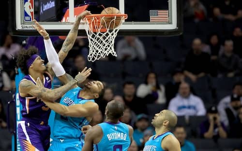 CHARLOTTE HORNETS-PHOENIX SUNS 104-109 | La vittoria di Phoenix arriva in rimonta, con i Suns ancora sotto di 5 a un minuto solo dalla sirena finale dopo essere stati in vantaggio di 20 punti all’intervallo. Le due triple di Kelly Oubre Jr. (che aveva sbagliato le prime 7 dall’arco) regalano il sorpasso decisivo ai suoi: servono tutti i suoi 23 punti – pareggiati anche da Devin Booker – per dare alla squadra dell’Arizona il primo successo dopo tre sconfitte in fila. In casa Suns c’è un Dario Saric in doppia doppia con 16 punti e 10 rimbalzi, mentre il migliore di Charlotte è Marvin Williams dalla panchina con 22 punti, suo massimo stagionale.