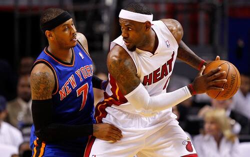 LA SERIE PLAYOFF DEL 2012 | Solamente in un’occasione James e Anthony si sono affrontati ai playoff: una serie di primo turno nel 2012 finita 4-1 per i Miami Heat, ma nella quale Melo pareggiò la produzione di James (27.8 punti per entrambi) e catturò più rimbalzi (8.2 contro 6.2), pur senza poter toccare gli assist del Re (5.6 contro 2.2) o la sua efficienza (48% dal campo contro 42%, 35% da tre contro 22%). Troppa anche la distanza tra le due squadre, con l’unica vittoria di New York propiziata dai 41 di Anthony
