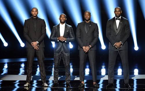 L’AMICIZIA CON WADE E CP3 | In quegli anni si è formato anche un fortissimo legame con Dwyane Wade e Chris Paul, i “Banana Boat Friends” come testimoniato da una celeberrima foto in vacanza assieme. Ma anche l’impegno civile dei quattro, come testimoniato dall’accorato appello agli ESPYs del 2015: “Noi quattro non parliamo di pallacanestro, ma di come possiamo cambiare il mondo e le persone attorno a noi” ha spiegato James. “La pallacanestro è una parte enorme della nostra storia, ma non siamo noi. Se permettiamo che il basket definisca ciò che siamo, allora non siamo niente”