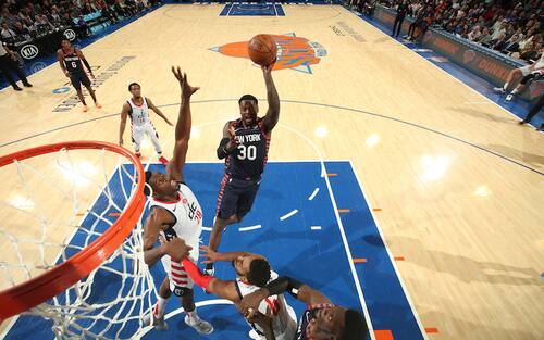 New York invece non va oltre i 35 punti di uno scatenato Julius Randle, in campo sin dalla palla a due assieme a Mitchell Robinson - alla ricerca di un equilibrio complicato e nuovo dopo l’infortunio di Marcus Morris. Kevin Knox invece non riesce a scuotersi, nonostante la partenza da titolare: 8 punti con 8 tiri, tanti errori, poca personalità e un -16 di plus/minus (peggior dato di squadra) che ben racconta la sua disfunzionalità