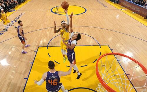 GOLDEN STATE WARRIORS-PHOENIX SUNS 105-96 | Sale a quattro la striscia di vittorie consecutive dei Golden State Warriors, che contro Phoenix inseguono anche di 10 punti nel quarto periodo ma trovano il modo di uscire vincitori per il 19° successo contro i Suns nelle ultime 21 sfide dirette. La squadra di coach Kerr va sotto nei primi tre parziali ma sfodera un quarto quarto da 39-18 che permette ai californiani di avvicinarsi (a sola mezza gara di distanza) ai New Orleans Pelicans, con l’obiettivo di non essere più il fanalino di coda della Western Conference