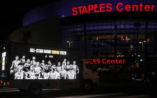 Anche un truck parcheggiato davanti allo Staples Center ricorda il prossimo appuntamento con lo “show” del weekend delle stelle: scontata la partecipazione – per acclamazione popolare e non solo – di LeBron James e Anthony Davis, anche se i tifosi mantengono alto nelle votazioni anche il giocatore più di culto in città, Alex Caruso