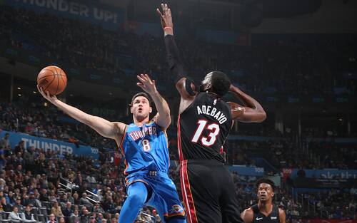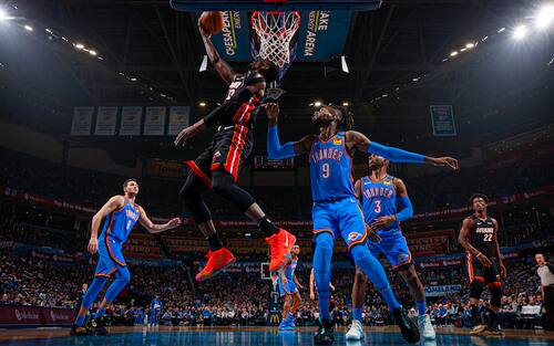 OKLAHOMA CITY THUNDER-MIAMI HEAT 108-115 | I Miami Heat conquistano la seconda vittoria consecutiva, salendo a un record del 50% lontano da casa (11-11) al termine di una gara controllata dall’inizio alla fine. La squadra di coach Spoelstra ha infatti chiuso il primo tempo avanti 61-47 grazie ai 40 punti realizzati nel primo quarto, concedendo al massimo agli avversari di rientrare a -2 a due minuti dal termine della gara ma portando comunque a casa la vittoria