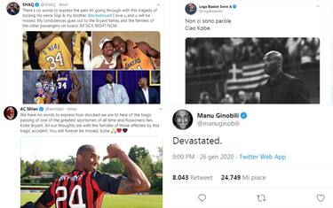 Dalle stelle NBA a quelle del calcio italiano e internazionale: il mondo dello sport è sotto choc dopo la morte di Kobe Bryant in un incidente in elicottero a Los Angeles. Le reazioni social alla tragica notizia riporta da TMZ che ha sconvolto tutti gli sportivi e non solo