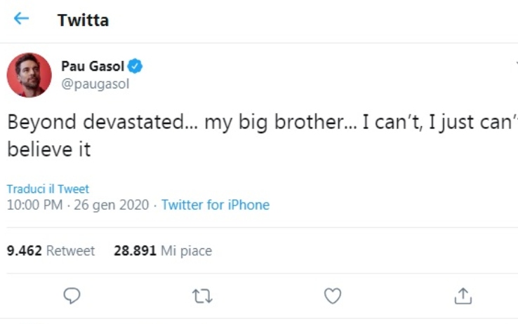 Sulla stessa lunghezza d'onda anche Pau Gasol, che definisce Kobe "Il mio fratellone"