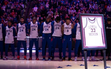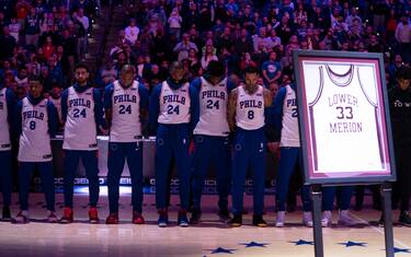 PHILADELPHIA 76ERS-GOLDEN STATE WARRIORS 115-104 | Philadelphia era la città natale di Kobe Bryant, e in quanto tale i Sixers non hanno potuto che ricordare il cinque volte campione NBA con tutti gli onori del caso. I giocatori della squadra di casa sono scesi in campo con le maglie personalizzate con i numeri 8 e 24, con la maglia numero 33 di Lower Marion High School (il liceo nel nord-ovest della città dove Bryant ha cominciato la sua carriera) incorniciata e illuminata al centro del campo