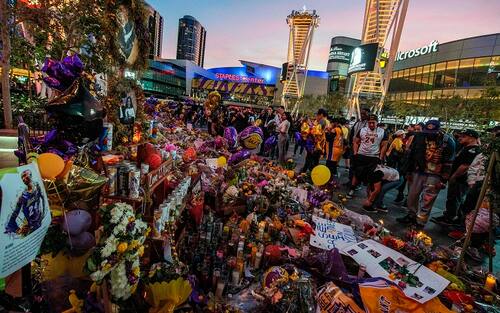 Era stato chiesto espressamente ai tifosi senza biglietto di non andare allo Staples Center, ma sin dal primo pomeriggio la folla ha riempito le strade e ha continuato con il suo pellegrinaggio silenzioso per rendere omaggio a Kobe