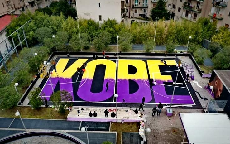 Impossibile citare tutti gli omaggi, vale una menzione quello di Brindisi prima della sfida tra l'Happy Casa e l'Armani Milano, stupendo. Brividi dentro un Palasport ma anche all'aperto, come in questo campetto a Napoli. Siamo nella zona del Rione Alto, dove c'era un campo fino a 3 giorni fa in disuso, ricolmo di siringhe e spazzatura. È stato rimesso a nuovo per Kobe, grazie al contributo di Nick Anson che vive a Los Angeles: conosceva Bryant, la sua associazione "Venice Basketball League” crea playground itineranti nel mondo, per caso si è trovato a Napoli in questi giorni. Con l'aiuto della community del sito italiano "Overtime" Anson ha riunito una squadra di adulti e bambini che insieme hanno ripulito tutto. L'estro di Jorit, noto street-artist napoletano, ha realizzato l'opera completa. Il campetto è diventato un gioiellino e accanto c’è un murales del Black Mamba. Lo sguardo di Kobe sembra quasi vegliare sui questi tanti piccoli tasselli italiani che compongono il mosaico mondiale della sua eredità.