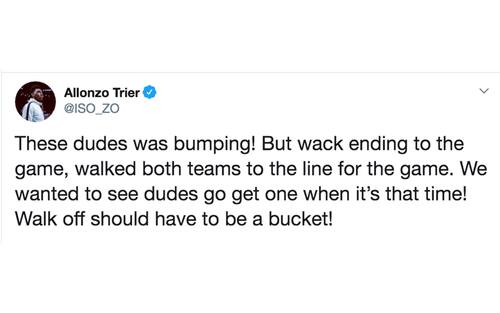 Dello stesso avviso anche Allonzo Trier di New York: "I ragazzi erano carichi! Ma finale deludente della partita, entrambe le squadre hanno fatto una processione in lunetta. Volevamo vedere i giocatori fare un canestro nel momento decisivo! Il finale dovrebbe essere un tiro segnato"