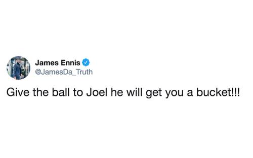 James Ennis, ex Philadelphia e ora a Orlando, ha una tattica per vincere: "Dai la palla a Joel [Embiid] e lui farà canestro!". Effettivamente Team Giannis ha fatto le cose migliore appoggiandosi al camerunense in post basso nel finale di gara, ma non è bastato