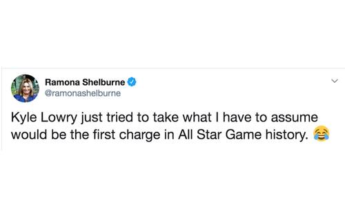 Grande protagonista dell'ultimo quarto è stato Kyle Lowry, che ha preso ben due sfondamenti - uno da Kawhi Leonard e uno da James Harden appena prima del tiro della possibile vittoria per Team LeBron: "Lowry ha appena provato a prendere quello che, immagino, ès tato il primo sfondamento nella storia dell'All-Star Game!" ha scritto Ramona Shelburne di ESPN