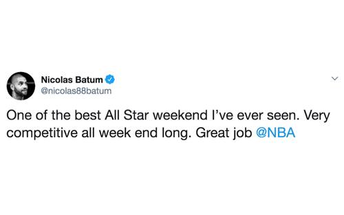 "Uno dei migliori All-Star Weekend che io abbia mai visto. Grande agonismo per tutto il weekend. Grande lavoro @NBA" ha scritto il francese Nic Batum di Charlotte