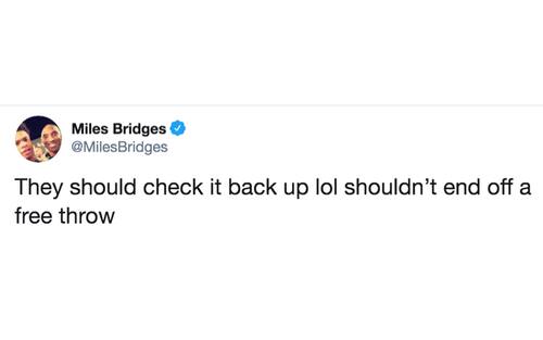 "Dovrebbero rivedere il sistema, non si può finire su un tiro libero" è anche l'opinione di Miles Bridges, MVP del Rising Stars