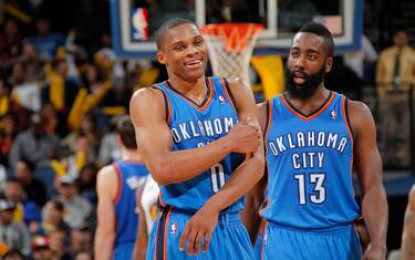 OKLAHOMA CITY, HARDEN | James Harden e Russell Westbrook sono d’accordo su una cosa: se non fosse arrivata la trade del 2012 (quella che ha mandato Harden a Houston) oggi i Thunder avrebbero un titolo NBA: “Certamente”, afferma Harden; “Facile”, gli fa eco Westbrook. “Il Barba” la spiega così: “Sono stato a OKC tre anni: abbiamo sempre perso contro la squadra che poi è diventata campione NBA. Il mio terzo anno solo in finale [contro gli Heat dei Big Three, ndr]. E quando ci siamo ritrovati assieme con Team USA abbiamo vinto una medaglia d’oro. Il titolo NBA era nel nostro destino. Ma a volte le cose vanno in un altro modo…”