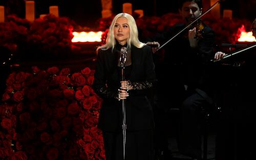 Il terzo e ultimo grande artista salito sul palco è stata Christina Aguilera, a cui è stato affidato l'utimo intervento durante la cerimonia con la sua toccante interpretazione di "Ave Maria"