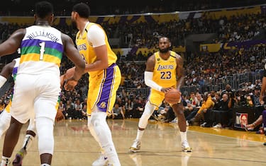LeBron James sente la prima sfida della sua carriera contro Zion Williamson ma anche quella contro i suoi tre ex compagni ceduti in estate per arrivare a Anthony Davis. Lo dimostra confezionando una gara in cui per una volta pensa meno ai compagni (6 assist, oltre 4 sotto media) e più a se stesso: sono 40 i punti per lui alla fine, con un ottimo 17/27 al tiro compreso un eccellente 5/11 da tre punti (va in lunetta un’unica volta e fa 1/2). Antonh Davis — che nei primi due incontri stagionali viaggiava a 43.5 punti di media — si ferma a 21 ma ci aggiunge 14 rimbalzi e ben 6 stoppate, dando ai Lakers il sesto successo in fila