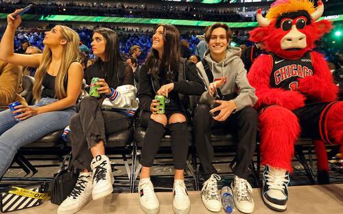 L’ESEMPIO TIK TOK | La popolarità di alcune star di Tik Tok come Charli D'Amelio, Addison Rae Easterling, Dixie D’Amelio e Chase Hudson (qui insieme alla mascotte di Chicago Benny the Bull) ha spinto la NBA ad avvicinarsi a nuove app e piattaforme (tra cui anche Snapchat) che le permettano di raggiungere fasce demografiche più giovani