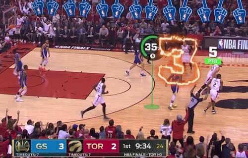 IL GIOCO SEMPRE PIÙ GIOCO | L’esperimento di arricchire il normale feed video ESPN con una versione stile-videogioco offerta da Twitch è andato in scena già durante le scorse finali NBA: sullo schermo diventano protagonisti anche una serie di grafiche e di emoticon pensate per catturare l’attenzione dell’utente, che può al tempo stesso comunicare con altri tifosi online per commentare la gara