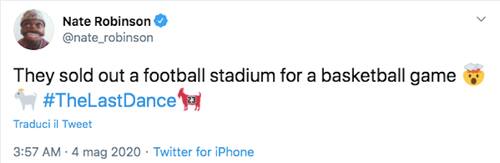 Nate Robinson sottolinea una delle tante storie contenute in queste nuove due puntate: la partita di Atlanta del 1998 giocata davanti a 62.000 persone in un'atmosfera pazzesca, tutta ovviamente dovuta alla presenza di Jordan sul parquet