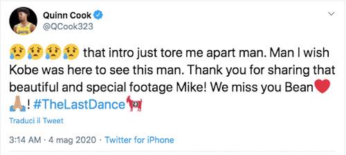 Le parole di un emozionato Quinn Cook - molto partecipe anche durante i giorni difficili per i Lakers a seguito della scomparsa di Bryant: un ringraziamento a Jordan per lo splendido momento e un'occasione per ricordare quanto Kobe manchi a tutti noi