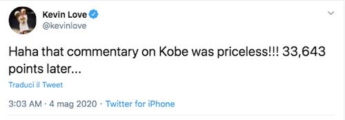 Kevin Love invece si sofferma sui commenti fatti nello spogliatoio dell'Est durante quell'All-Star Game - pronti a sfidare un Bryant di 19 anni e alla prima gara delle stelle della sua carriera. Alcuni parlavano dei suoi errori al tiro, ma come dice Kevin Love: "A guardarli adesso, 33.643 punti dopo..."