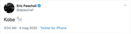 Il giovane rookie degli Warriors Eric Paschall non ha dubbi sul fatto che Kobe sia "il più grande di tutti i tempi" (GOAT, la capra)